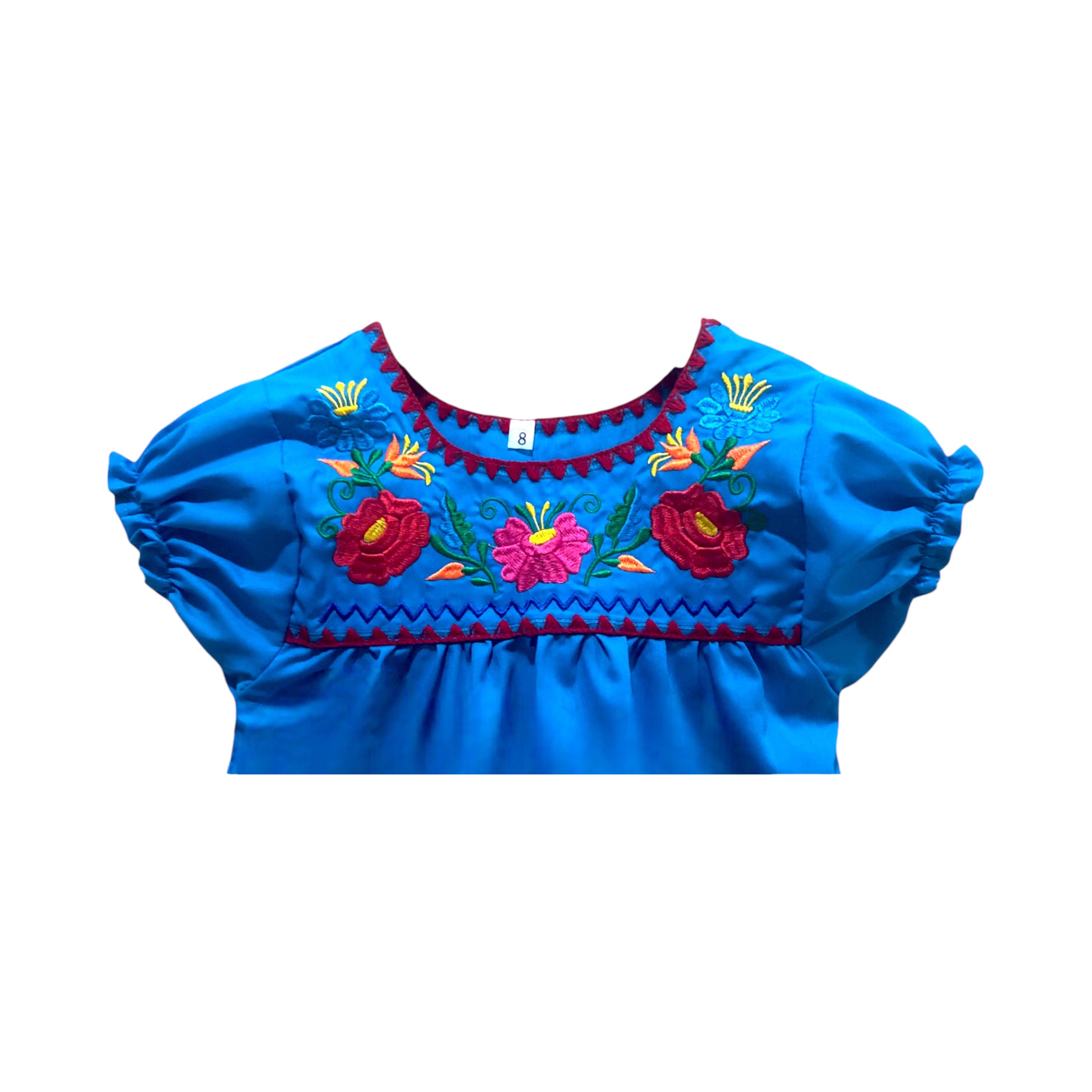 No pierdas la oportunidad de adquirir esta hermosa blusa mexicana para que tu niña sea la envidia de sus amigas. Realiza tu pedido hoy mismo y lleva en tu familia un pedazo de la rica herencia cultural de México.