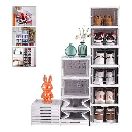 5. Ahorra espacio: Tenga sus zapatos bien organizados y manténgalos libres de polvo con estos cubos de zapatos plegables. Se puede utilizar no sólo como una caja de zapatos, sino también como un armario de almacenamiento en esquinas estrechas, como entre 2 escritorios.