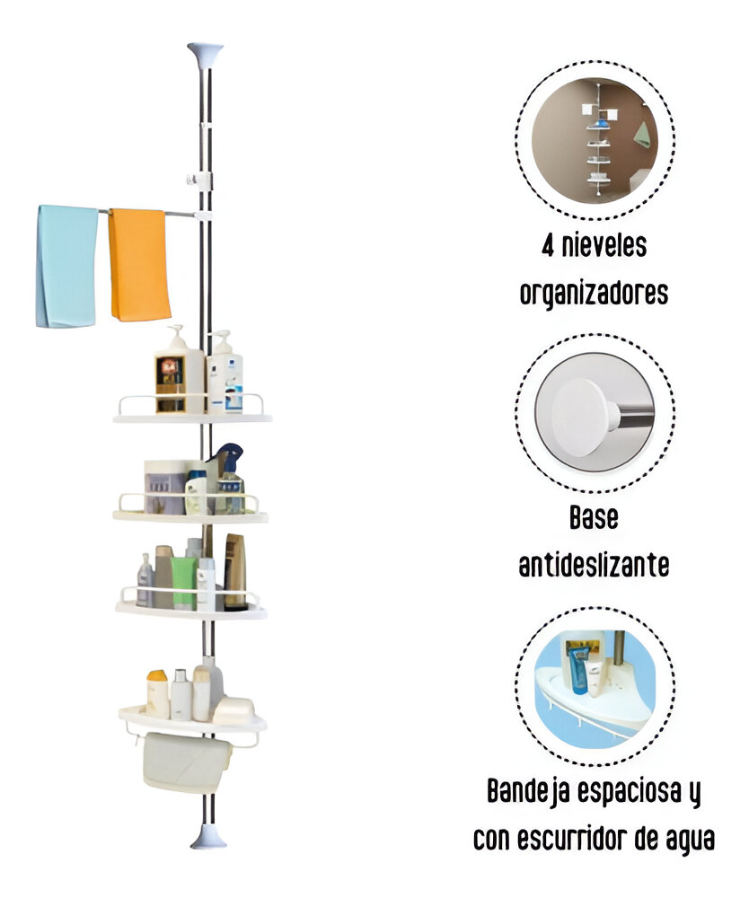 Fácil instalación sin herramientas: No necesitas complicaciones, simplemente colócalo en la esquina de tu baño y listo. ¡En pocos minutos tendrás todo organizado!
