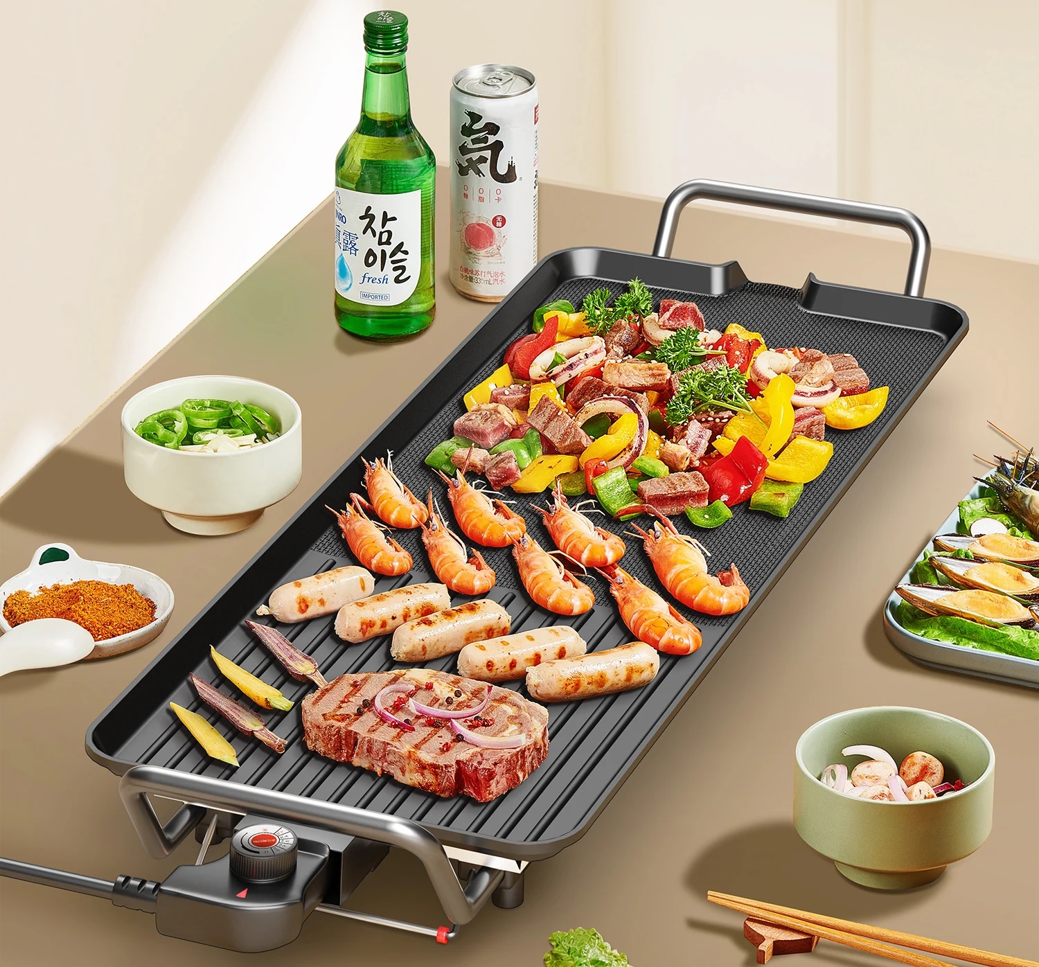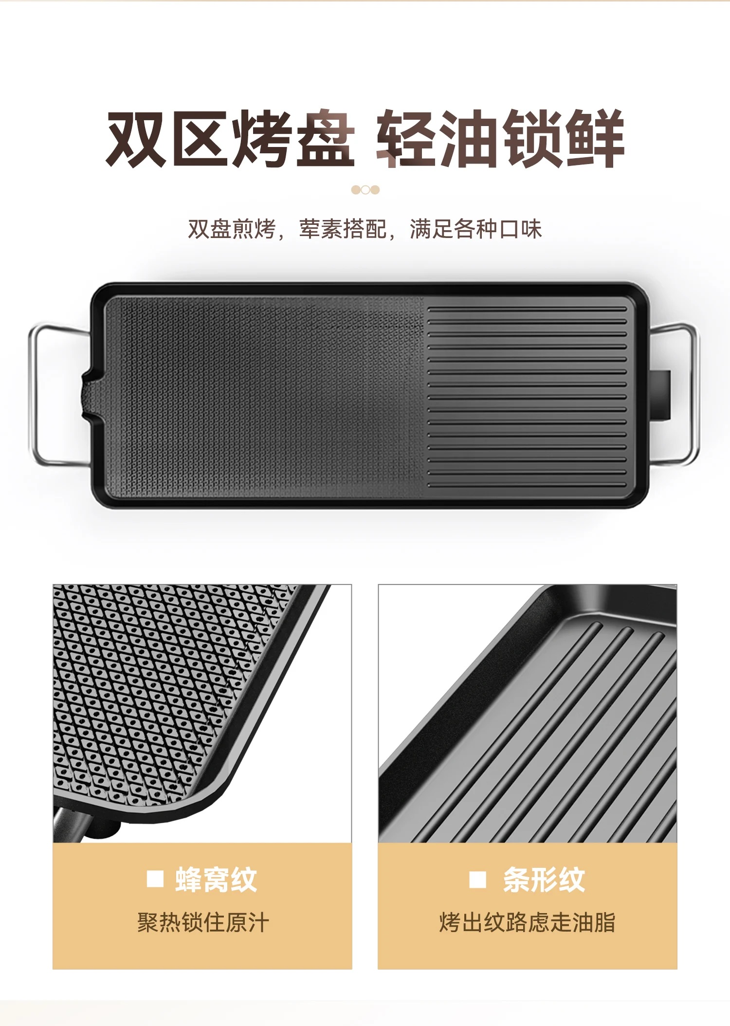 Parrilla sin humo: utilizando tecnología de calentamiento rápido a alta temperatura, esta parrilla eléctrica para barbacoa resuelve principalmente los problemas de humo y olores desagradables asociados con las barbacoas tradicionales, permitiéndole disfrutar de la diversión de asar en el interior sin restricciones. Diseño multifuncional: la parrilla eléctrica ofrece una cocción versátil, permitiéndole preparar libremente una variedad de deliciosos alimentos como ensaladas, carnes, verduras y mariscos. Le permite crear sin esfuerzo una amplia ga ma de delicias culinarias. Enchufe estadounidense de 110 V: diseñado para ser compatible con el voltaje estándar en los EE. UU. UU., nuestra parrilla eléctrica para barbacoa se puede usar directamente sin la necesidad de un convertidor, lo que garantiza comodidad y practicidad. Limpieza: Equipada con un revestimiento antiadherente, la plancha elimina los residuos difíciles de limpiar. Esto maximiza la eficiencia y facilita la limpieza. Seguridad y confiabilidad: La placa de parrilla cuenta con Múltiples medidas de seguridad, garantizando la seguridad del usuario en términos de elementos calefactores, fuente de alimentación y base. Puede confiar en nuestra parrilla eléctrica para barbacoa para disfrutar de una experiencia de asado segura y sin preocupaciones.