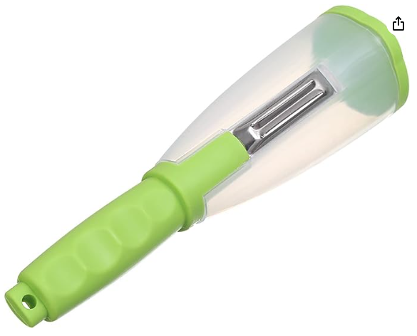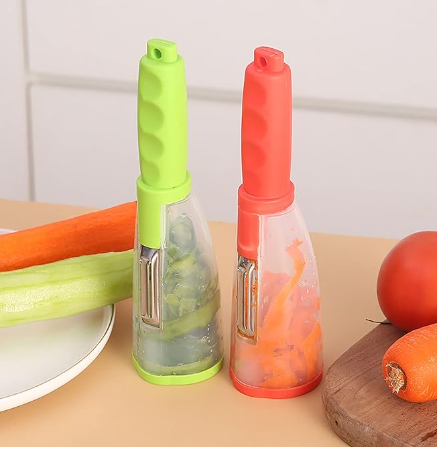 Pelador de verduras con contenedor, acero inoxidable, multifunción, tipo de almacenamiento, cuchillo para pelar, pelador de papas con mango cómodo antideslizante para cocina(Verde)