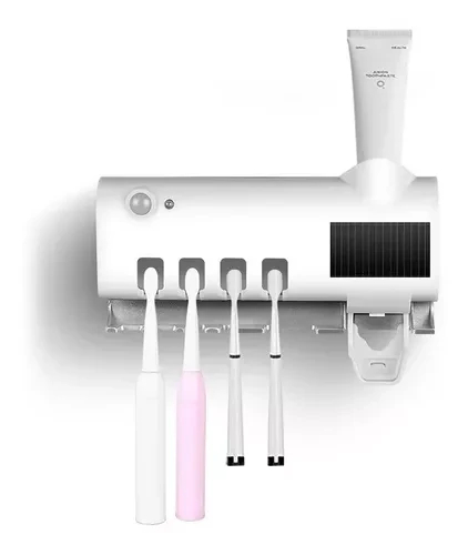 PORTA CEPILLO DISPENSADOR DE PASTA: Este soporte de cepillo de dientes UV inteligente con función de esterilizador, puede limpiar el 99.9% de las bacterias en docenas de segundos, usando una luz ultravioleta, puede desinfectar y esterilizar hasta 4 cepillos de dientes al mismo tiempo. Sus hijos estarán felices de cepillarse los dientes, ya que este desinfectante UV para cepillos de dientes les garantiza a usted y a su familia un cepillo de dientes limpio y saludable.