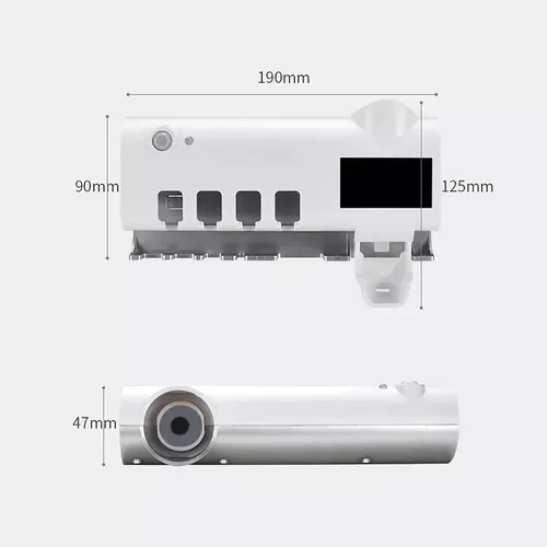 ALMACENAMIENTO MÚLTIPLE: Este Esterilizador de cepillo también viene con exprimidor de pasta de dientes y funciones de almacenamiento. Puede colgar 4 cepillos de dientes en orden, mantiene su baño más limpio y organizado.Y el exprimidor automático de pasta de dientes ayudará a los niños a llevar fácilmente toda la pasta de dientes hasta el final del tubo, sin tocarlo y reducir el desperdicio.