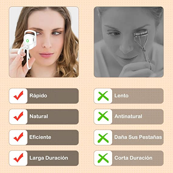 Fácil de usar, solo necesita presionar y mantener presionado el interruptor para calentar, espere 30 segundos. Puede aplicar delineador de ojos o cualquier otra cosa durante estos 30 segundos. Después de un corte suave, tus pestañas se rizan al instante. crea las pestañas rizadas más voluminosas en segundos. Y el resultado te durará 12 horas.