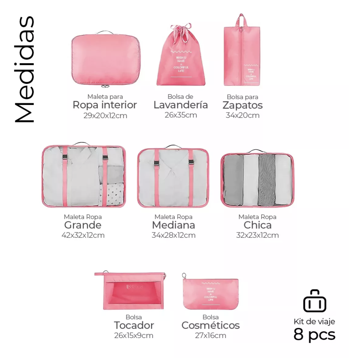 Organizadores De Maletas Para Viaje Impermeable Set 8 Piezas
