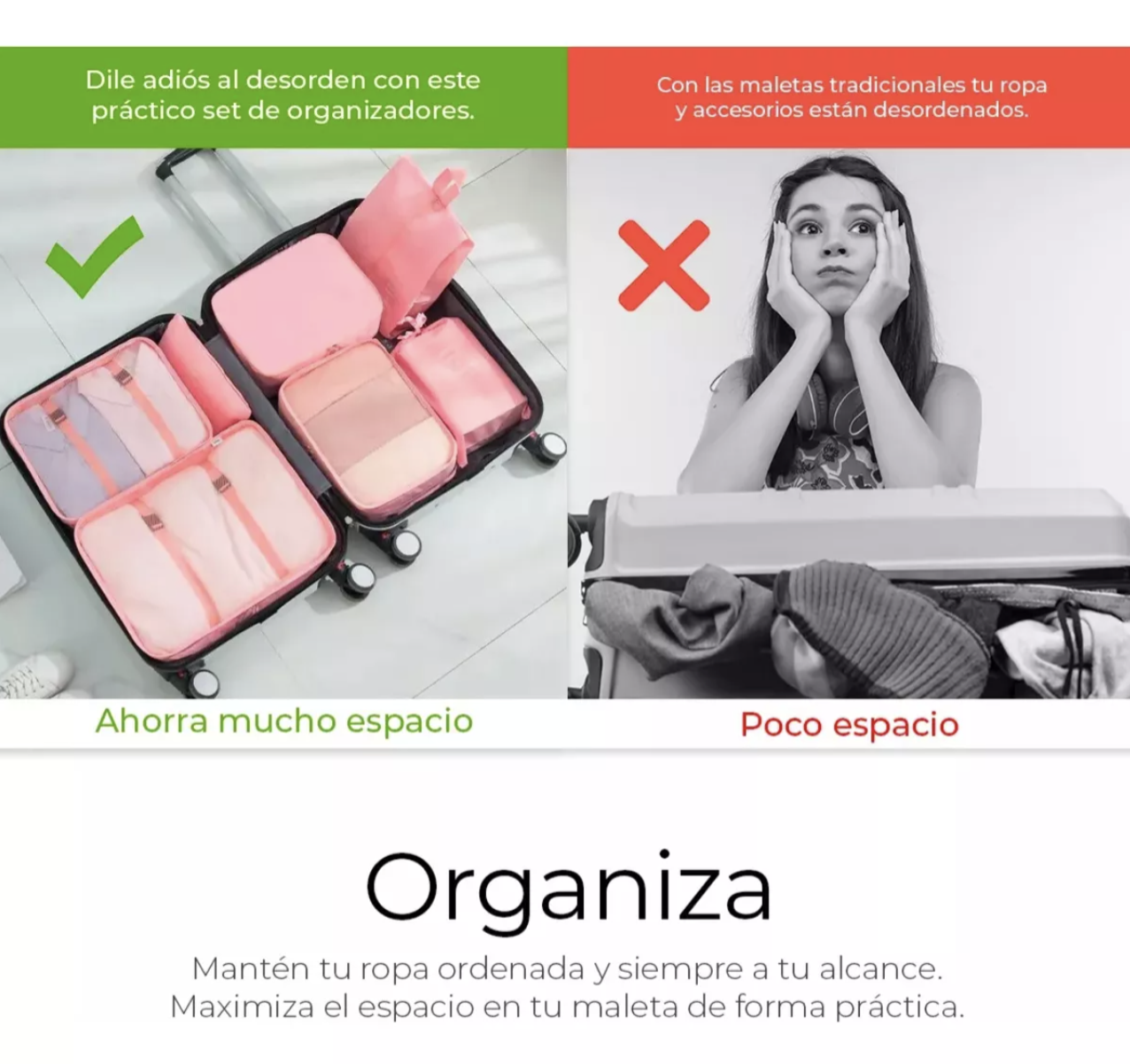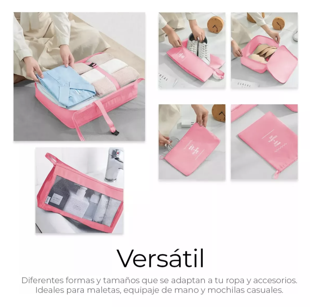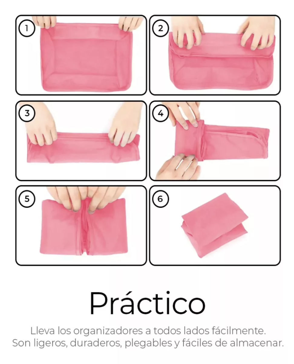 Este set de organizadores es versátil, permitiéndote guardar desde chaquetas, ropa interior, cosméticos, hasta bancos de energía o zapatos. Este producto está diseñado para satisfacer tus necesidades de almacenamiento